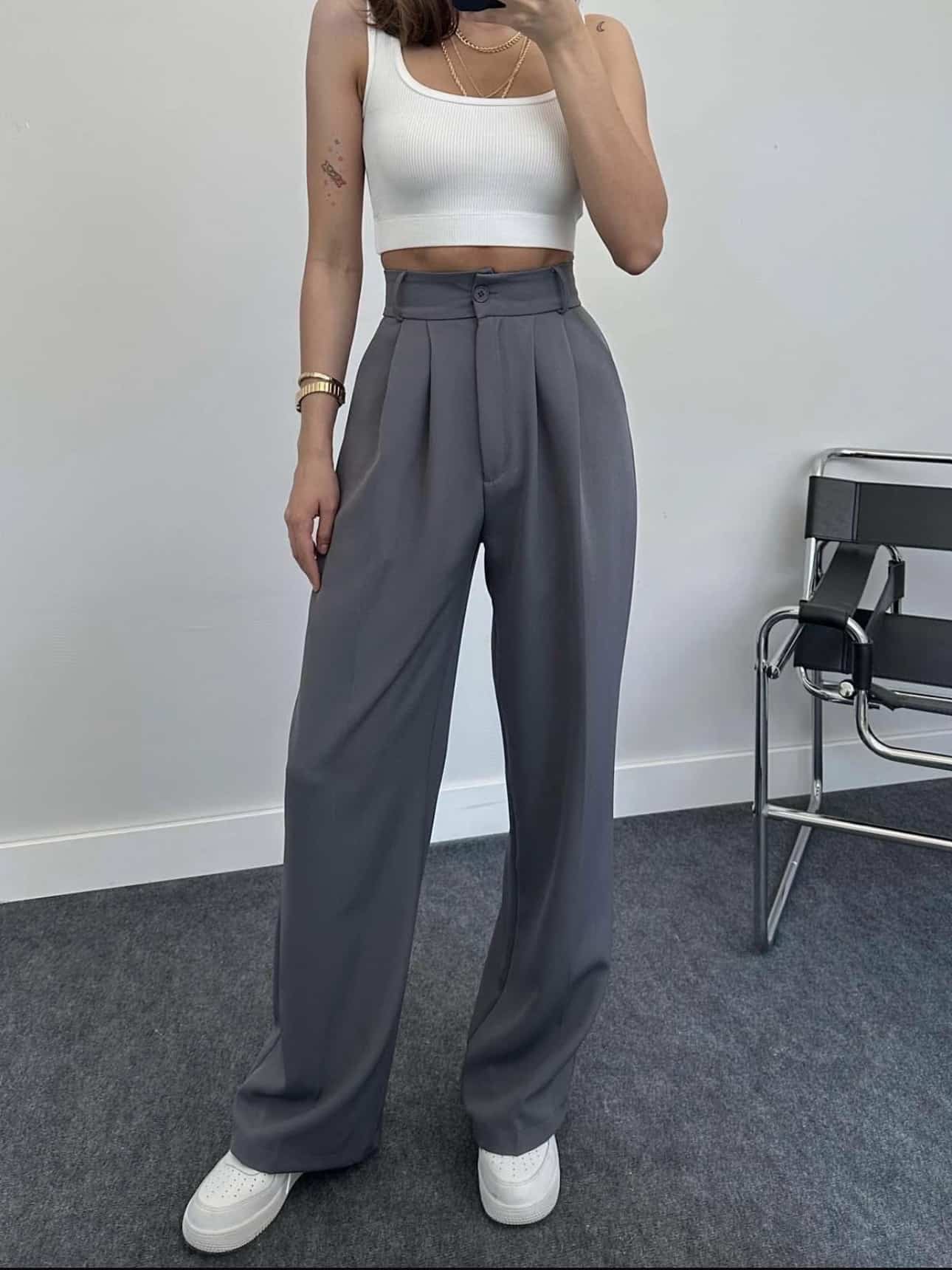 Ce pantalon ample en gris, offre un mélange parfait de confort et de style convient parfaitement à différentes morphologies, tout en garantissant une allure élégante et fluide.